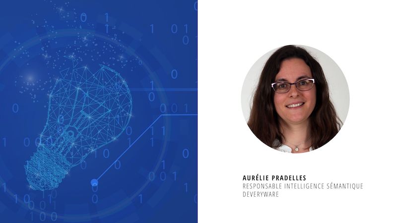 Après des études en Ingénierie Linguistique, Aurélie Pradelles fait ses premiers pas dans la recherche appliquée au sein de la société GEOLSemantics. Elle participe à la conception d'une solution d'analyse linguistique et sémantique des textes en français, anglais, arabe et chinois ainsi qu'à de nombreux projets nationaux. Forte de ces expériences, elle dirige actuellement une équipe d'ingénieurs linguistes-informaticiens au sein de la société Deveryware by Flandrin Technologies, afin de conduire des projets innovants permettant d'enrichir les outils de Deveryware by Flandrin Technologies par des technologies innovantes de NLP (Natural language processing), mais aussi de proposer des outils autonomes à forte valeur ajoutée à d'autres utilisateurs.