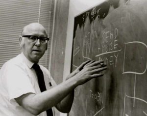 Allen Newell (1927 - 1992) est un chercheur en informatique américain et professeur de sciences informatiques à l'université Carnegie Mellon. Son apport à l'intelligence artificielle est très important. Il a reçu le prix Turing en 1975, la bourse Guggenheim des sciences naturelles en 1976, un IJCAI Award pour l'excellence de la recherche en 1989, un IEEE Emanuel R. Piore Award en 1990 et la Médaille Nationale des sciences mathématiques et informatiques américaine en 1992.