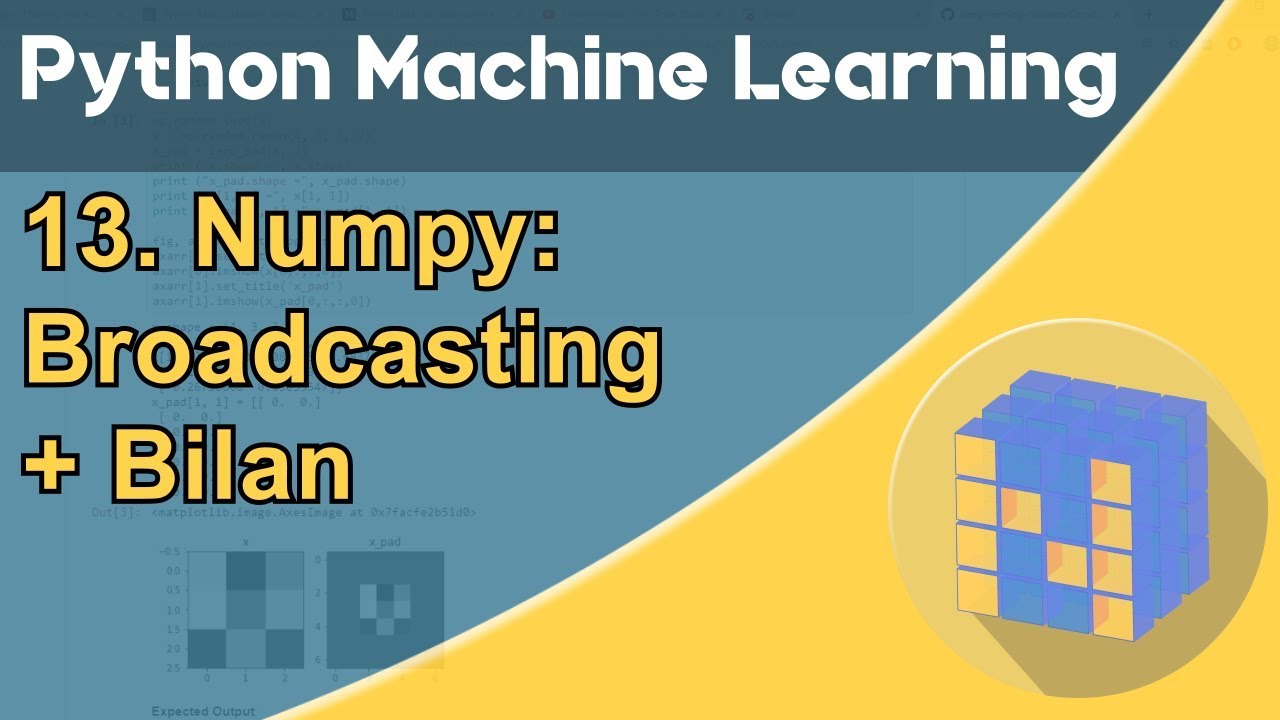 Ce tutoriel python en français vous présente numpy et une de ses caractéristiques essentielles: Le broadcasting. Cette technique nous permet de trè...