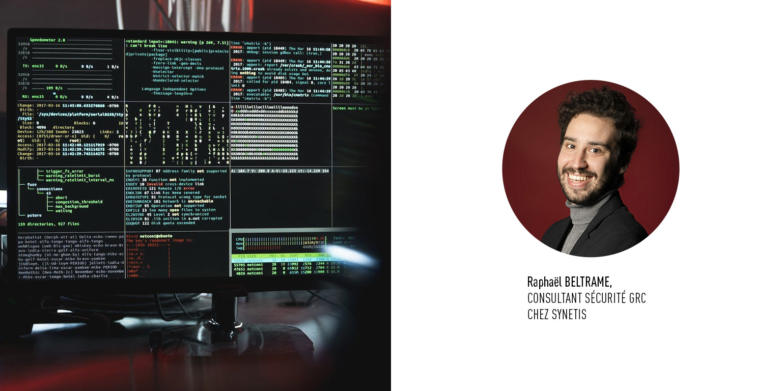 Raphaël Beltrame est consultant sécurité Gouvernance, Risques et Conformité, chez Synetis, depuis 3 ans. Disposant d'un cursus d'économie gestion à La Sorbonne, puis de consultance en management à l'UCO d'Angers, son parcours se concentre sur le pilotage et la supervision de projets de sécurisation d'environnements informatiques. Il a acquis son expertise lors de l'accompagnement de nombreuses entreprises du CAC40.