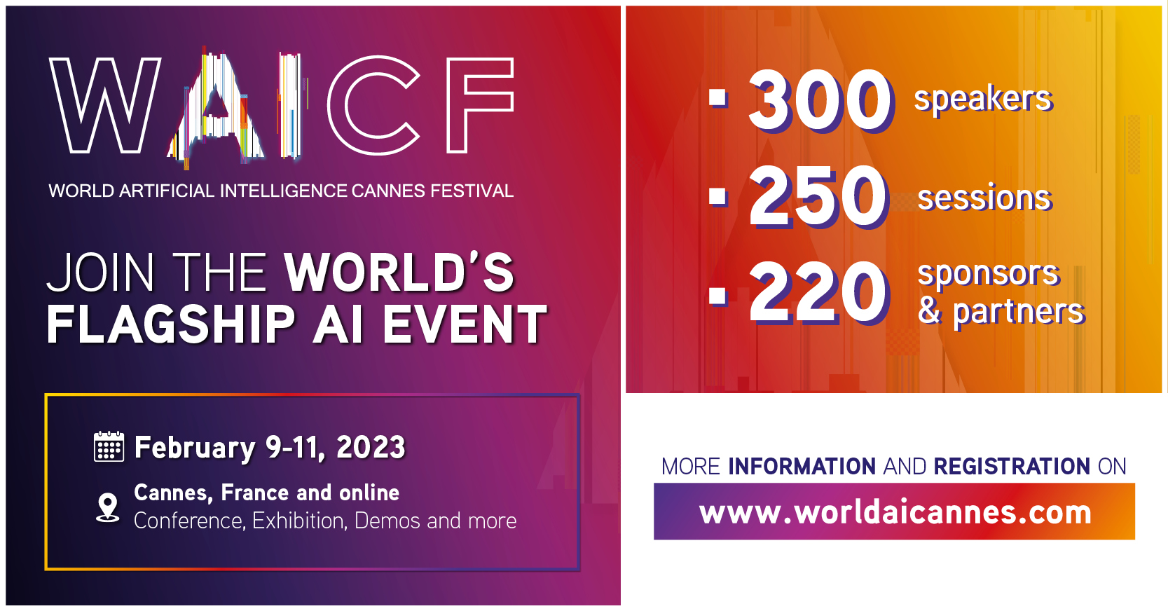 Les 9, 10 et 11 février 2023, Cannes redeviendra le centre névralgique mondial de l’Intelligence Artificielle (IA) à l’occasion du World AI Cannes Fes...