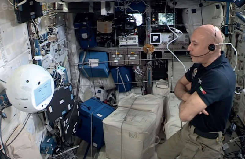 L’astronaute Luca Parmitano converse avec CIMON à bord de l’ISS. Source : Youtube