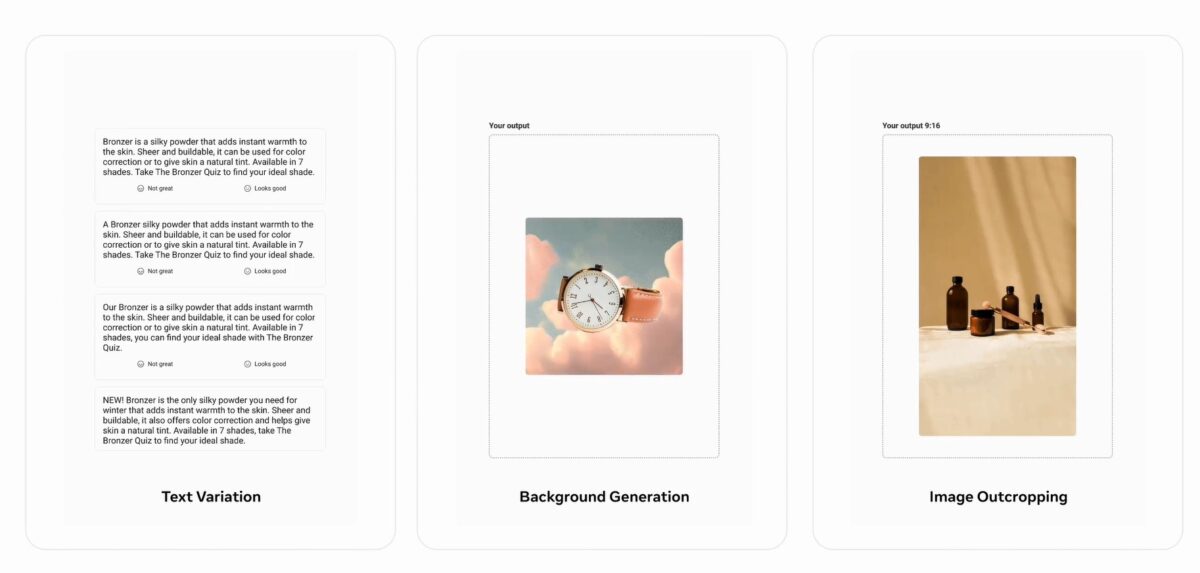 Selon le blog de Meta, « AI Sandbox servira de terrain d’essai pour les premières versions de nouveaux outils et fonctionnalités, y compris des outils publicitaires alimentés par l’IA générative ».AI Sandbox est une suite d'outils utilisant l’IA générative pour aider les annonceurs à créer rapidement des publicités plus ciblées et plus attractives sur Facebook et Instagram. Les trois premiers concernent la variation de texte, la génération d’arrière-plan et le recadrage d’image.