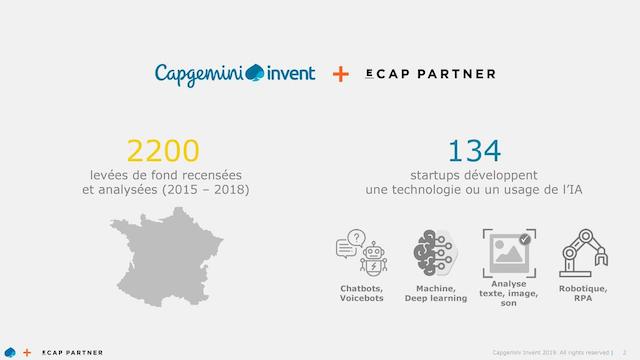 Capgemini Invent et eCAP PARTNER se sont associés pour publier la première édition de leur baromètre des start-ups d'intelligence artificielle en France. En se basant l'évolution entre 2015 et 2018, il a pour ambition de constituer une vision consolidée de l’écosystème des startups françaises du numérique et d’en comprendre – semestre par semestre – les principales tendances, tout en mettant également en valeur ces acteurs innovants et leur proposition de valeur.