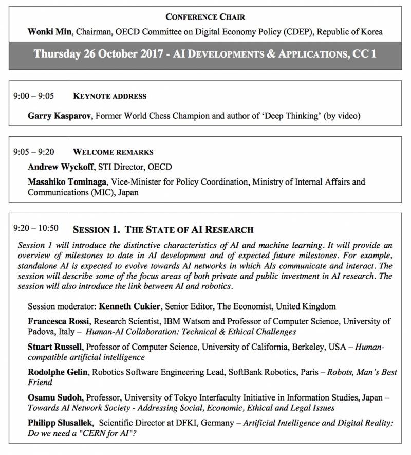 Cette première journée de la conférence "AI: Intelligent Machines, Smart policies" offre un programme riche et particulièrement intéressant: