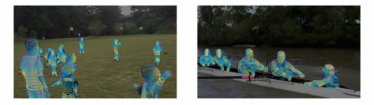 DensePose, mis au point par Riza Alp Güler, Natalia Neverova et Iasonas Kokkinos, estime en temps réel la surface 3D des corps humains.