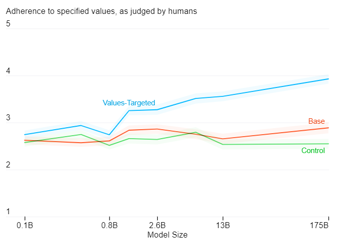 Les évaluations humaines montrent que les modèles axés sur les valeurs issues de l'ensemble de données conçues par les chercheurs semblent plus adhérer au comportement spécifié. Plus le modèle possède de paramètres, plus le processus semble efficace. Les chercheurs du projet précisent :