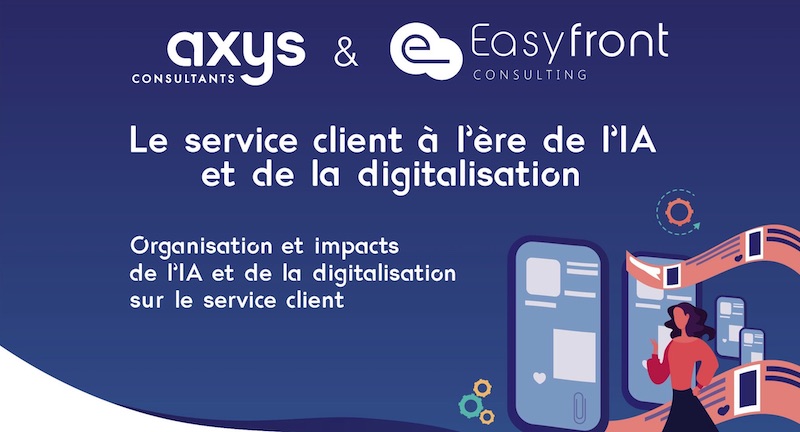 Axys Consultats et Easyfront consulting ont publié une enquête sur le service client à l'ère de l'intelligence artificielle. Quelles conséquences l'IA et la digitalisation ont-elles sur le service client ? Avec l'évolution des modes de communication, de la digitalisation et de l'omnicanalité comment sont organisés les services client aujourd'hui ? Ont-ils intégré les nouvelles technologies et pour quels bénéfices ? Comment améliorer le service client ? L'intelligence artificielle a-t-elle été intégrée aux outils du service client et pour quel résultat ?
