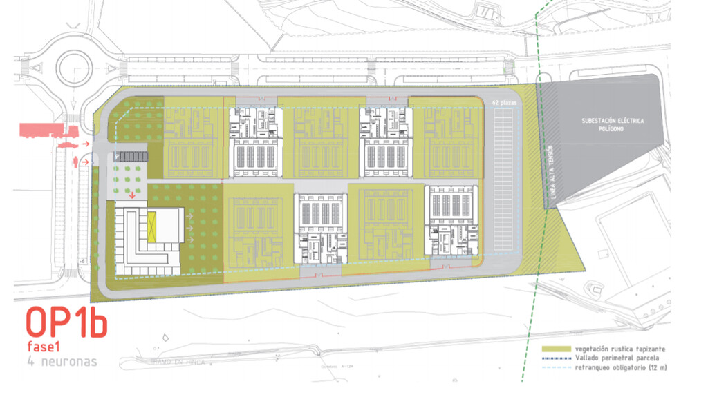Dans le cadre d'un projet espagnol, un bâtiment de type "Brain Mirroring Center" (BMC) devrait être construit. Ces installations de formation se constitueront d'un bâtiment modulaire qui sera équipé progressivement de serveurs, de GPU, de périphériques réseau afin de permettre aux futurs formés de disposer du matériel adéquat pour s'entrainer.Au total, neuf modules sont prévus dont quatre seront construits durant la première phase. Chaque module sera configuré comme des espaces de travail indépendants les uns des autres et sera spécifique à un secteur où l'IA est appliquée au quotidien : santé, finance, commerce, télécommunication, etc. Chaque salle devrait mesurer environ 90 mètres de longueur pour 15 mètres de largeur, pour des superficies comprises entre 1 100 et 1 400 m2.