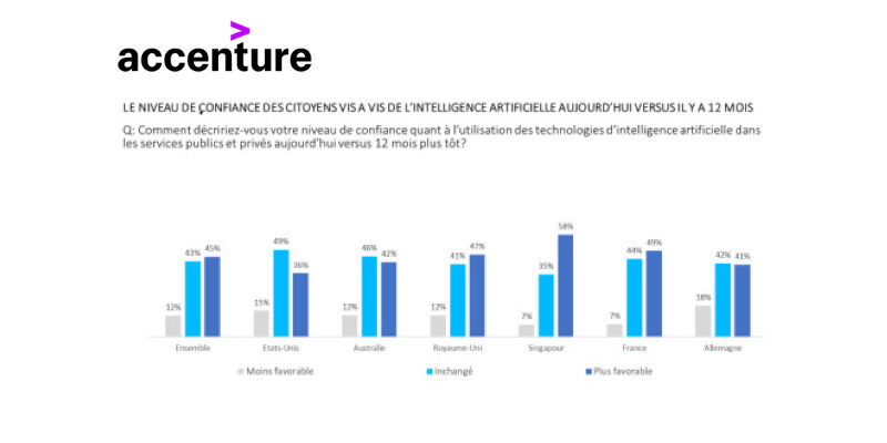 « À l’heure où les nouveaux services numériques jouent un rôle croissant dans leurs vies quotidiennes, les citoyens attendent de leur Etat qu’il saisisse les opportunités de mettre à profit l’IA pour améliorer les programmes et services publics », explique Bernard le Masson, directeur des activités Consulting et Strategy Services publics d’Accenture dans le monde.L’enquête fait également ressortir d’autres indicateurs positifs quant au point de vue des citoyens sur l’utilisation de l’IA par leur Etat. Près des deux tiers (62 %) des répondants estiment ainsi que leur Etat est au moins aussi qualifié que le secteur privé pour fournir des services ayant recours à l’IA. Plus de la moitié (56 %) se disent favorables à l’utilisation de l’IA par les pouvoirs publics pour fournir de manière plus efficace des services nouveaux ou améliorés. Seulement un répondant sur quatre (25 %) se dit inquiet de l’utilisation de l’IA par l’Etat sur les plans de l’éthique et de la responsabilité.« L’intelligence artificielle offre de nouvelles possibilités de collaboration homme-machine pour améliorer les services, et les pouvoirs publics doivent explorer de manière proactive ces nouvelles approches de services, tout en veillant à ce que les technologies IA soient mises en œuvre de manière responsable. »