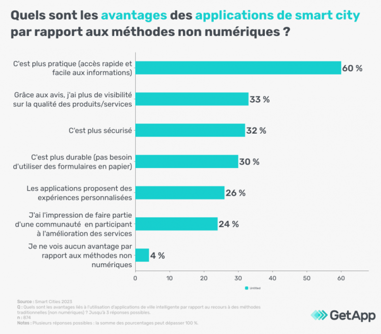 Face à l'utilisation croissante du smartphone par les Français (87% en possèdent) et à l’essor des villes intelligentes, les PME sont confrontées à des défis mais aussi à des opportunités. Elles doivent accélérer la numérisation de leurs offres et développer des applications adaptées pour répondre aux besoins changeants des citoyens tout en tenant compte des disparités d’accès et de maîtrise des nouvelles technologies.Sabrina Khoulalène, Analyste de contenu chez GetApp, commente :