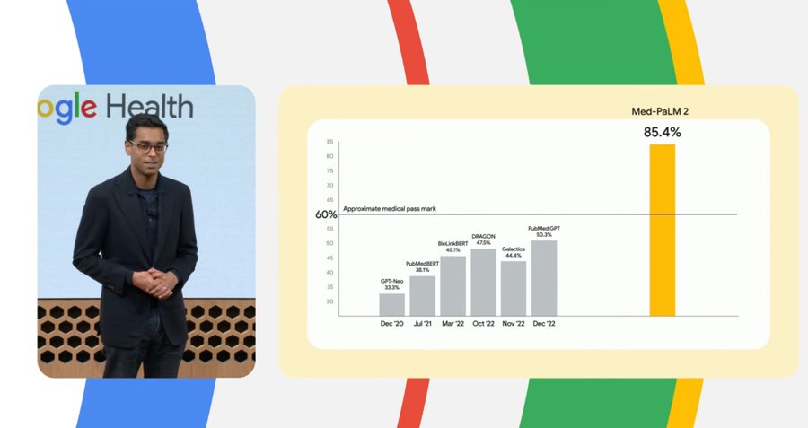 C'est lors de son événement annuel sur la santé, The Check Up, où Google a partagé des mises à jour sur l’IA en santé, notamment ses progrès dans la recherche sur le modèle médical du grand langage (LLM) qu'a été présenté Med-PaLM 2.