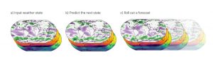 La prévision météorologique basée sur l’apprentissage automatique (MLWP) offre une alternative au PNT traditionnel. Les chercheurs de DeepMind ont utilisé le deep learning pour entraîner GraphCast, un modèle de 36,7 millions de paramètres, sur quatre décennies de données de réanalyse météorologique, à partir de l’ensemble de données ERA5 du Centre européen pour les prévisions météorologiques à moyen terme (CEPMMT).Le modèle entraîné se base sur l’état de la météo mondiale 6 heures auparavant et la météo en temps réel pour prédire le temps 6 heures à l’avance.