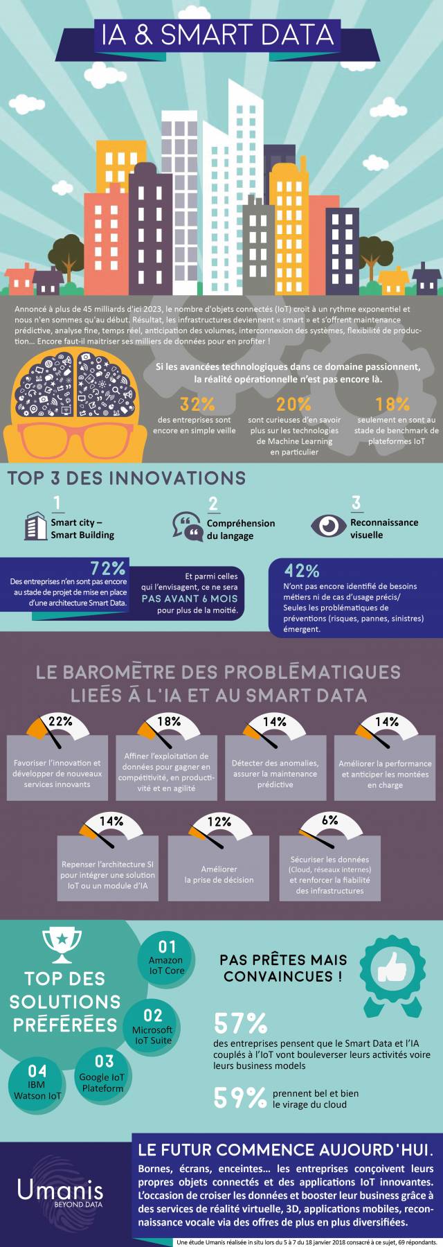 - Si elles ne sont pas encore prêtes, 57% des entreprises pensent que le Smart Data et l'IA couplés à l'IoT va bouleverser leurs activités, voire leurs business models.