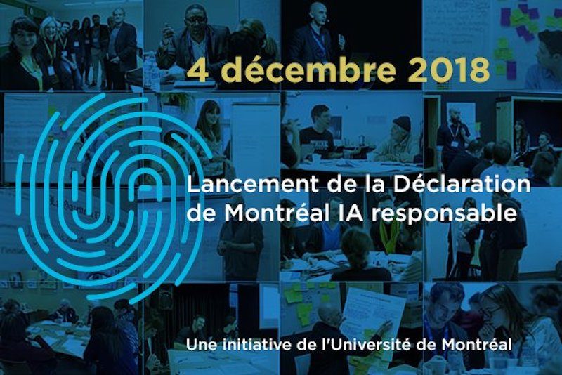 Le 4 décembre prochain aura lieu le lancement de la Déclaration de Montréal pour un développement responsable de l’intelligence artificielle. Vous pourrez suivre cet événement en direct grâce à l'Université de Montréal qui présentera le texte en collaboration avec les Fonds de recherche du Québec et ses partenaires.