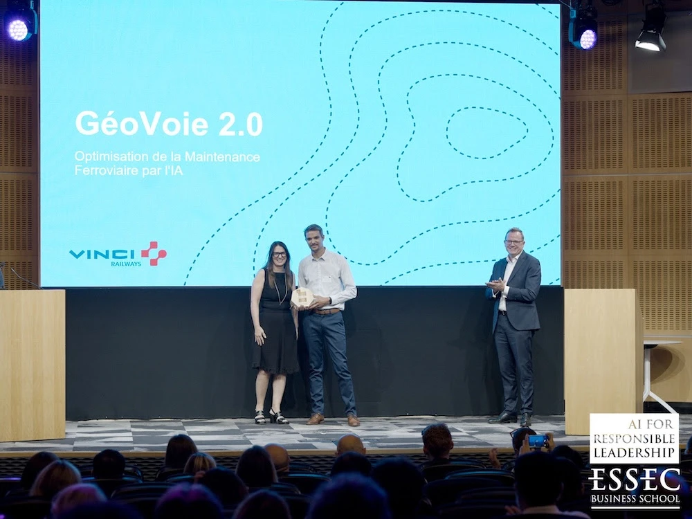 Le prix Or a été décerné à Vinci pour son projet Géovoie. Saluée par le jury pour sa maturité et son fort potentiel de déploiement, cette initiative innovante vise à optimiser la maintenance des voies ferrées.. Ce projet contribue à renforcer la fiabilité des infrastructures ferroviaires, à diminuer la pénibilité des interventions et à promouvoir un processus plus écologique, incarnant ainsi une vision durable et novatrice pour le secteur ferroviaire.