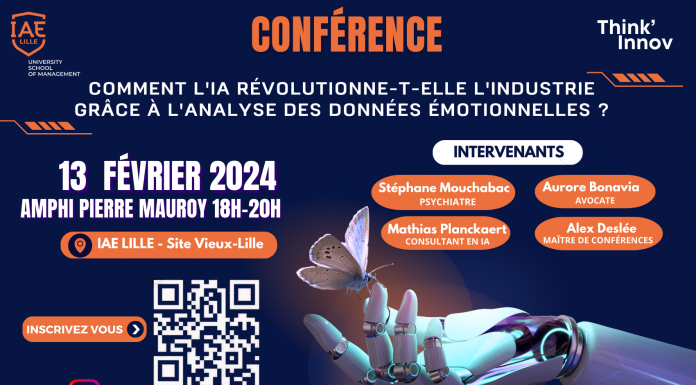 Les entreprises doivent aujourd'hui revoir leurs stratégies au prisme de l'IA. Pour vous permettre d'appréhender l'impact de l'IA dans l'industrie, les étudiants du Master 1 Marketing B to B International et Innovation de l'IAE Lille vous invitent à participer à la conférence "Comment l'IA révolutionne-t-elle l'industrie grâce à l'analyse des données émotionnelles ?". L'événement aura lieu le 13 février prochain, de 18h à 20h, à l’amphithéâtre Pierre Mauroy à l’IAE Lille, site Vieux-Lille.