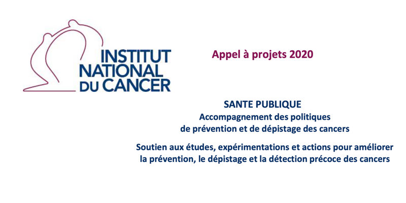 L’Institut national du cancer (INCa) a publié son appel à projets 2020 de soutien aux études, expérimentations et actions pour améliorer la prévention, le dépistage et la détection précoce des cancers (DEPIPREV). La date limite de soumission des dossiers de candidature est fixée au 7 avril 2020 à 16h00.