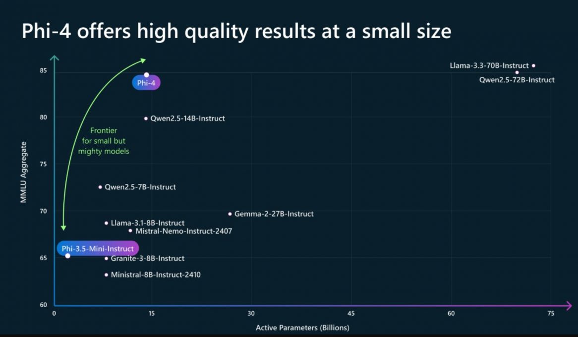 Avec Phi-4, Microsoft démontre une nouvelle fois qu’il est possible de concilier performance et compacité. Ce SLM de 14 milliards de paramètres qui selon l'entreprise "excelle dans le raisonnement complexe dans des domaines tels que les mathématiques, en plus du traitement du langage conventionnel", a réussi à surpasser sur certains benchmarks des modèles de pointe tels que Gemini Pro 1.5, GPT-4o ou Claude 3.5 Sonnet. Alors qu'on a pu voir arriver des LLMs affichant un nombre de paramètres de plus en plus impressionnant, certains acteurs de l'IA comme Mistral AI ou Google proposent désormais des modèles beaucoup plus compacts. Microsoft, avec ses modèles Phi, s'est intéressé au potentiel des SLMs dès avril 2023. Alors qu'il a dévoilé les modèles Phi-3,5 : Phi-3.5-mini-instruct, Phi-3.5-MoE-instruct, et Phi-3.5-vision-instruct, optimisé chacun pour des tâches spécifiques, en août dernier, il introduit Phi-4.