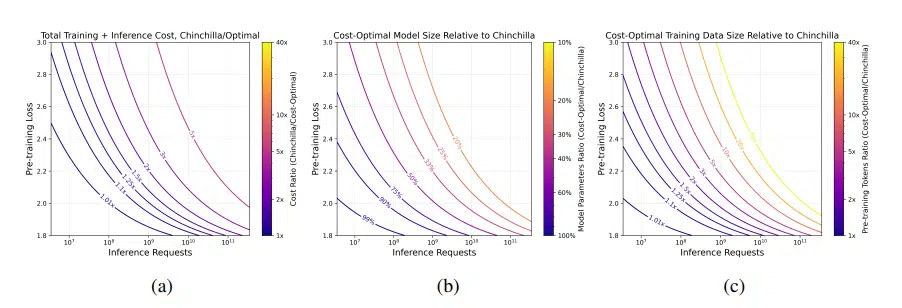 Ils montrent que, pour une qualité donnée et une demande d’inférence élevée, il est plus rentable d'entraîner des modèles plus petits et plus longtemps que les modèles de style Chinchilla. En effet, les modèles plus petits ont un coût d’inférence plus faible, ce qui compense le coût d’entraînement plus élevé. Des validations expérimentales et des recherches futures sont toutefois nécessaires pour explorer davantage ces propositions dans des plages de données et de modèles extrêmes.