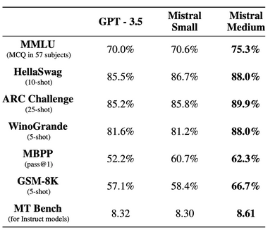 - Mistral-Médium : De la plus haute qualité, utilisant un modèle prototype noté à 8,6 sur MT-Bench, prenant en charge plusieurs langues et le code.