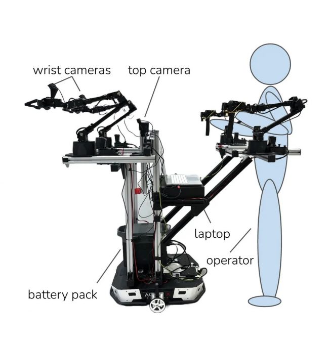 Références de l'article : "Mobile ALOHA: Learning Bimanual Mobile Manipulation with Low-Cost Whole-Body Teleoperation", arXiv (2024). DOI: 10.48550/arxiv.2401.02117