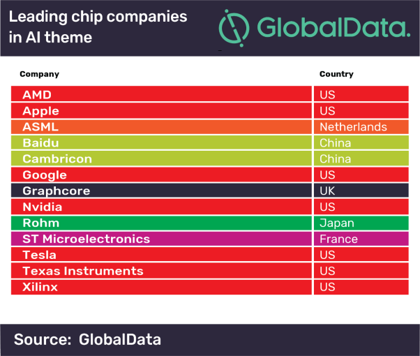 Cyrus Mewawalla, responsable de la recherche thématique chez GlobalData, commentait que les entreprises qui investissent dans les bons secteurs deviennent des exemples de réussite. À l'inverse, celles qui loupent ces grands thèmes finissent par échouer selon lui. Les sociétés listées par GlobalData sont les mieux placées dans le secteur des semi-conducteurs pour tirer parti du domaine de l'IA au cours des deux à cinq prochaines années.