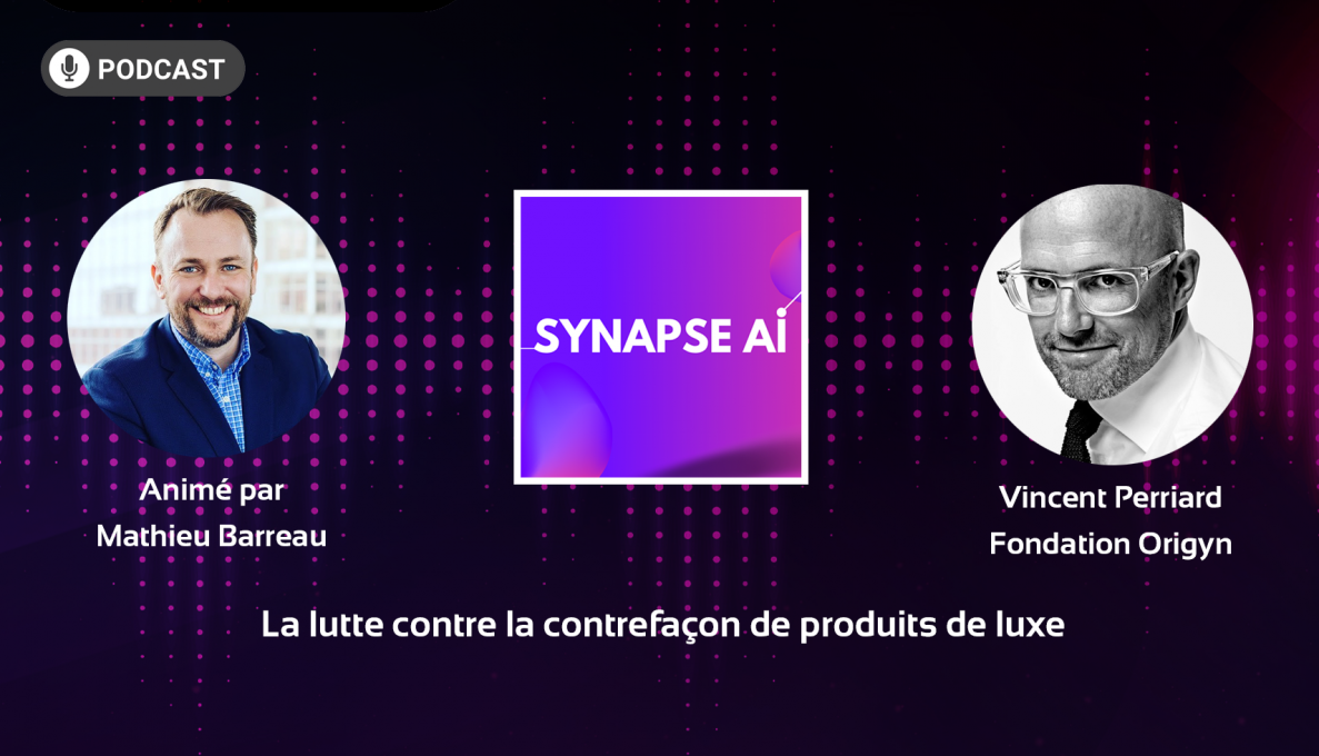 Dans ce N°4 du podcast Synapse AI, animé par Mathieu Barreau, Vincent Perriard présente Origyn, une fondation suisse à but non lucratif qui s'est donné pour ambition de lutter contre la contrefaçon de produits de luxe.
