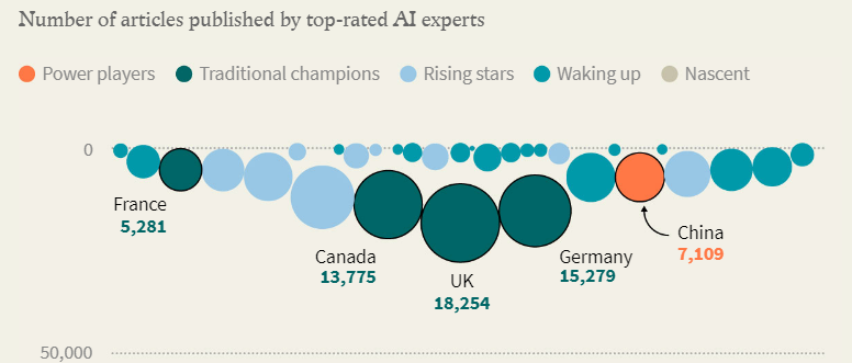 Chine, 2ème au classement et 1er d'ici 2030 selon les projections, nous devons garder à l'esprit que sa plus grande faiblesse est sa position relativement isolée en matière d'intelligence artificielle.