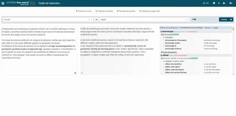 Éditeur de logiciels spécialisé dans la traduction automatique et le traitement naturel du langage, SYSTRAN a toujours été l'un des pionniers dans le domaine et a mis sur le marché fin 2016 une nouvelle génération de solutions, basées sur un framework opensource OpenNMT développé en collaboration avec Harvard NLP. OpenNMT a notamment été récompensé par ACL 2017, la conférence mondiale des experts en linguistique informatique dans la catégorie des systèmes opérationnels.Au-delà du moteur générique, SYSTRAN propose d’optimiser les réseaux neuronaux dans un processus post entraînement, appelé "spécialisation". Cette méthode de spécialisation apporte une nette amélioration du score de qualité de la traduction en un temps record comme l'indique Jean Senellart :