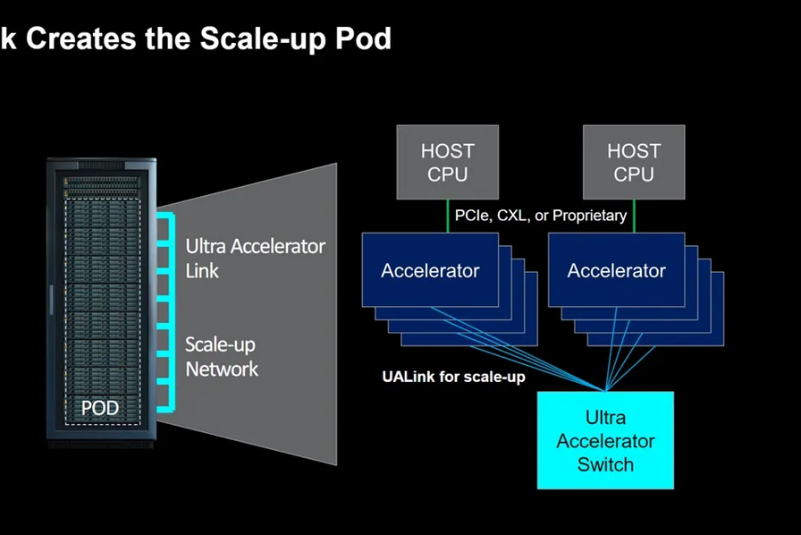 En adoptant UALink, les entreprises évitent le verrouillage technologique souvent associé à des solutions comme NVLink. La norme UALink 1.0 est conçue pour permettre la connexion de jusqu'à 1024 accélérateurs au sein d'un pod de calcul d'IA, et permettra des charges directes et des stockages entre la mémoire attachée aux accélérateurs dans le pod, offrant une échelle de connexion plus grande et plus flexible que les solutions actuelles.NVLink 5.0, la dernière génération de la technologie de NVIDIA, présentée à la GTC 2024, permet quant à elle des transferts de données rapides entre les GPU et entre les GPU et les CPU. Elle permet, grâce au commutateur NVSwitch, de connecter jusqu’à 576 GPU Blackwell B200.