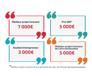 Depuis sa création en 2008, 6050 porteurs de projets ont candidaté, 60 d’entre eux ont été primés et 320 000€ ont été investis. Cette année, Toulon Provence Méditerranée remettra le prix du Meilleur Projet Innovant de l'Aire Toulonnaise de 5 000€ et EDF remettra son prix lié à l’environnement, l’eau et l'énergie de 5 000€ également.