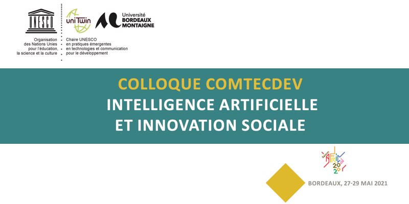 Le Colloque COMTECDEV - Intelligence artificielle et innovation sociale se tiendra du 27 mai 2021 au 29 mai 2021 à Borde...